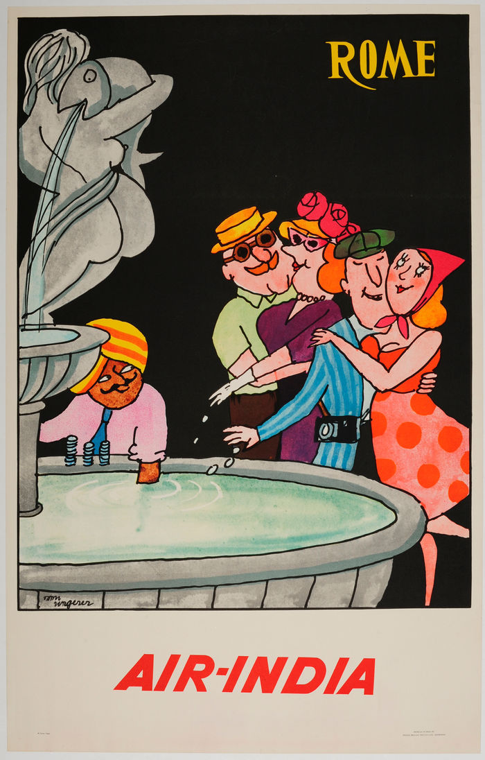 The "Devil Made Me Do It" ....Ha! Conde Nast Traveler just a few years back did a great piece on the Maharaja, and wrote about the fact that this revered Air India mascot did some things you would never want to be caught doing. That's why these posters, and this one in particular are so powerful. C'mon-you're at the Trevi fountain and you've never thought about grabbing those Euro's and Coins? Of course we all have, and if not, we'll you must be an influencer! This poster was actually feature in the article found here. https://www.cntraveller.in/story/air-india-maharaja-vintage-poster-ads/